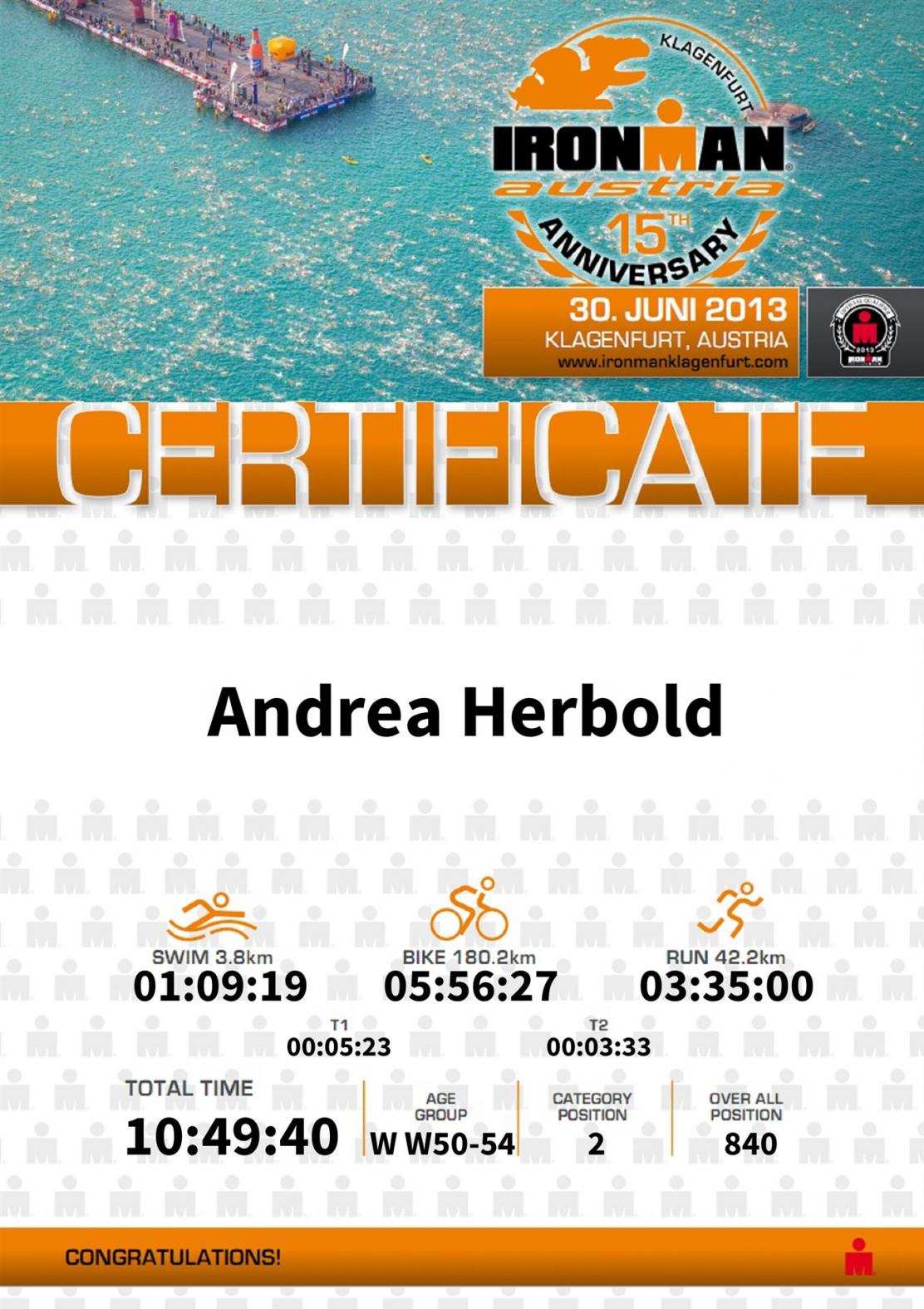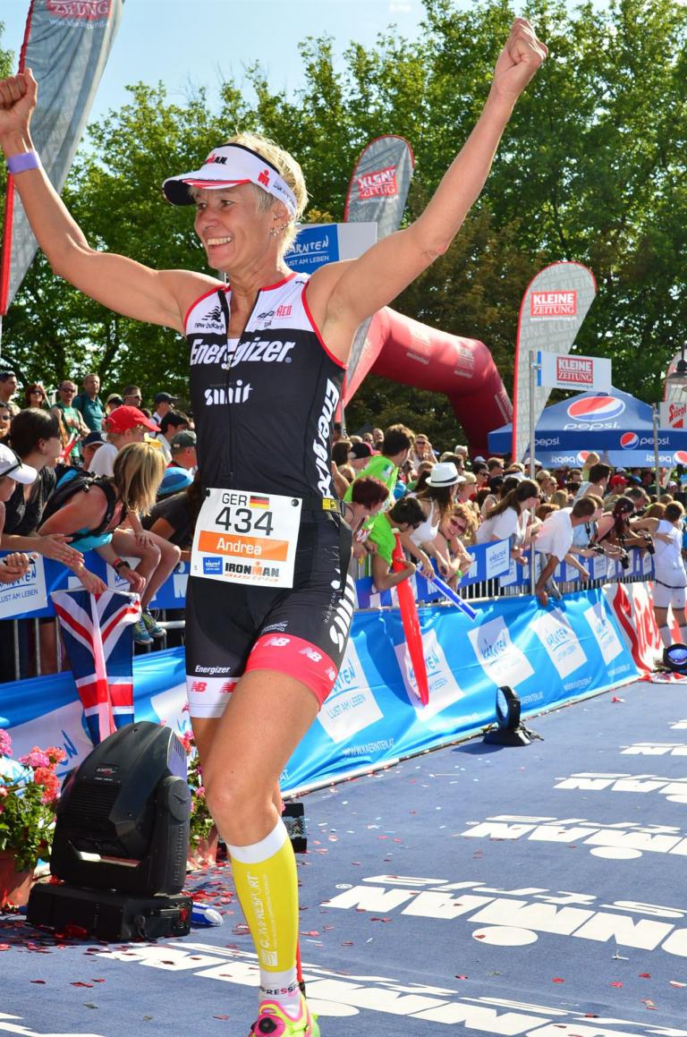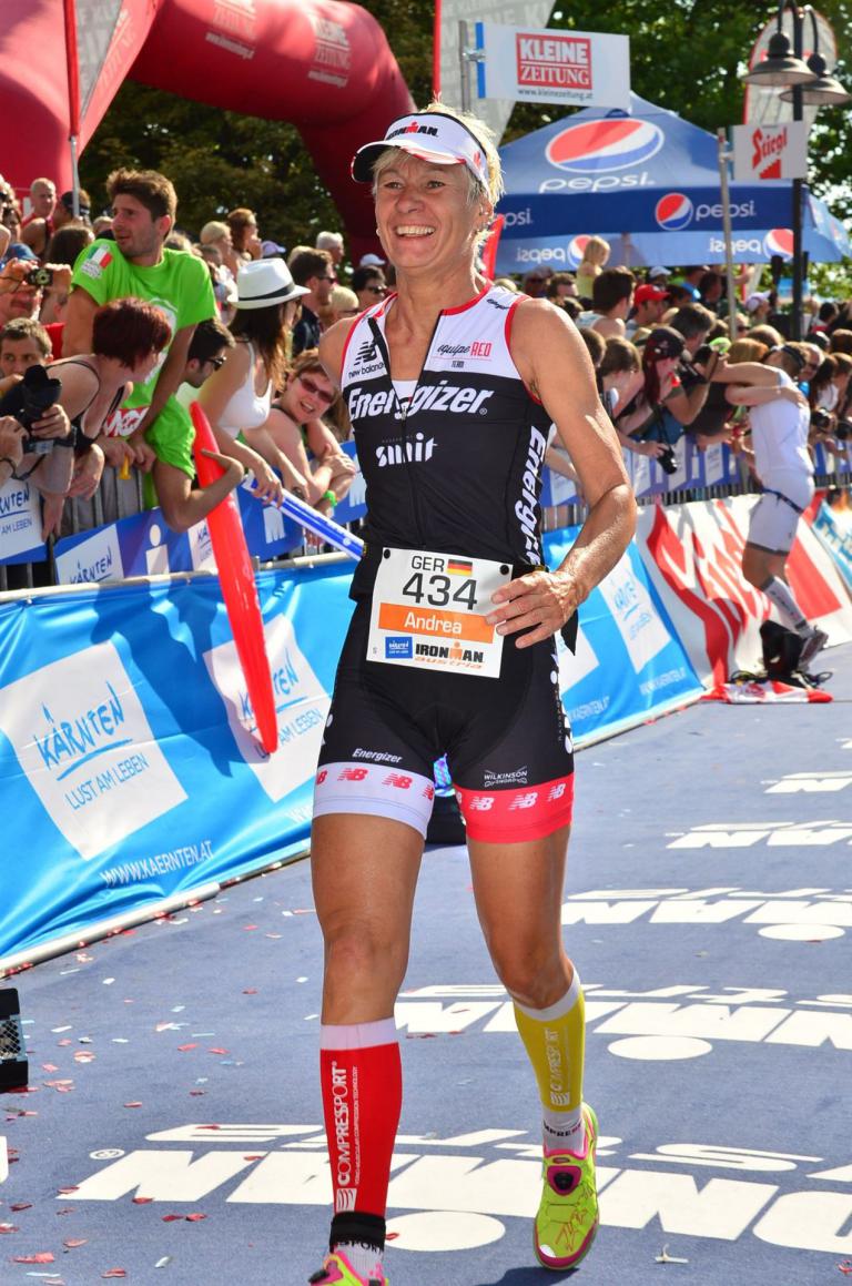 Nach insgesamt 10:49:40 Stunden durchlaufe ich als zweite in meiner Altersklasse W50, mit dem berühmten Satz YOU ARE AN IRONMAN das Ziel in Klagenfurt.