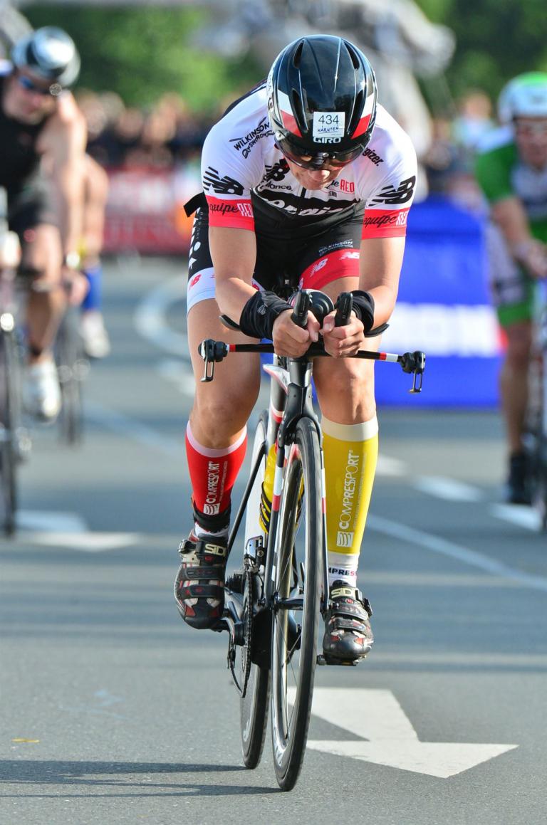 Auch hier gibt es viele Fans an der Strecke. Der DJ feuert mich mit der Bemerkung "Ironlady" an, ich kurble den Berg hoch.