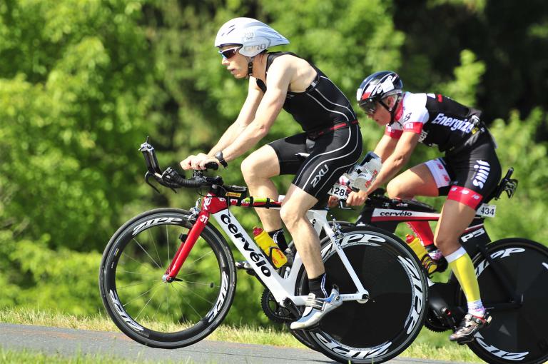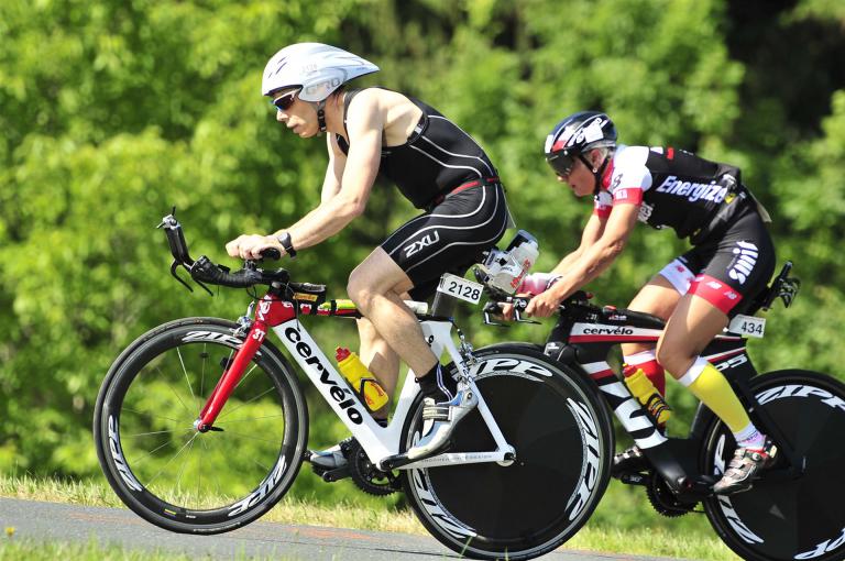 Auf der ersten Runde sind relativ viele Triathleten unterwegs. Es ist mitunter nicht so einfach, keinen Windschatten des Vordermannes zu nutzen. In der 2. Runde hat sich das Feld etwas auseinander gezogen, so dass man etwas entspannter fahren kann.