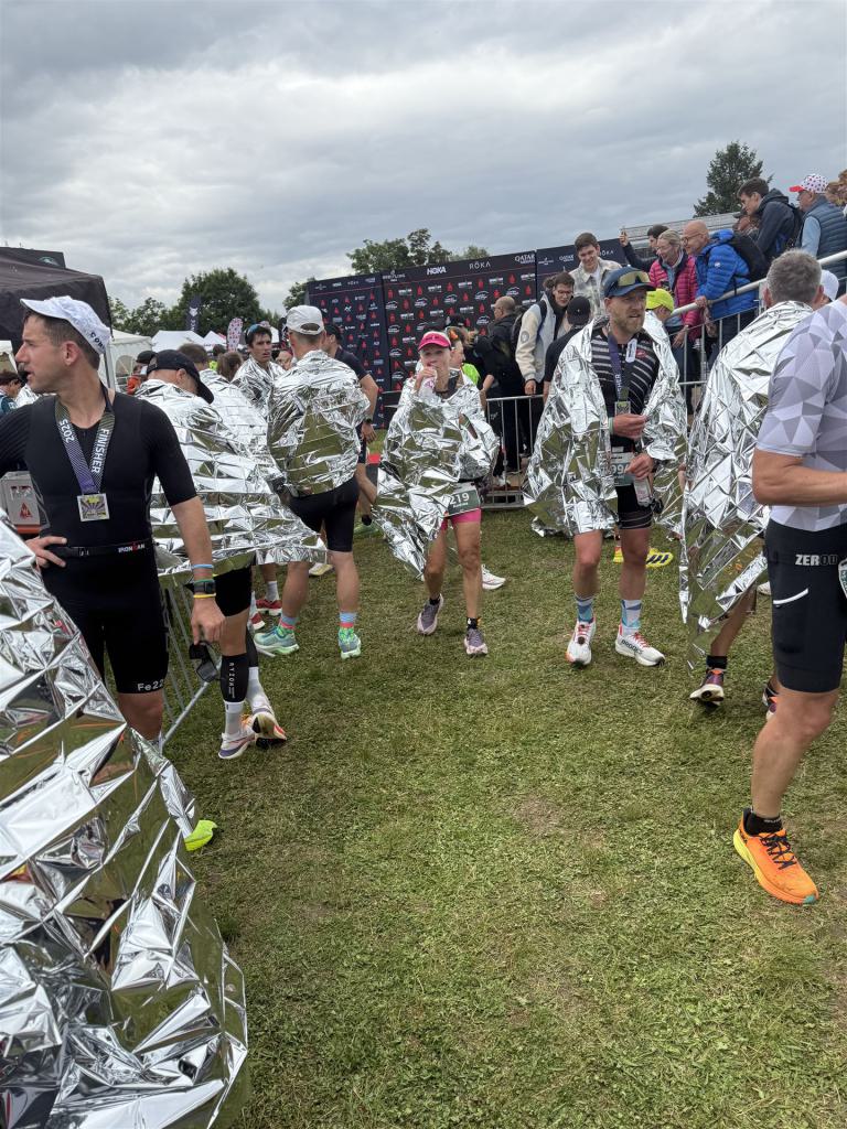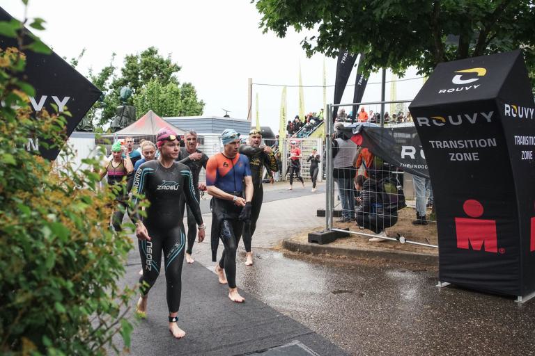 Nach 40:07 Min. komme ich aus dem Wasser und laufe in die Wechselzone T1.
