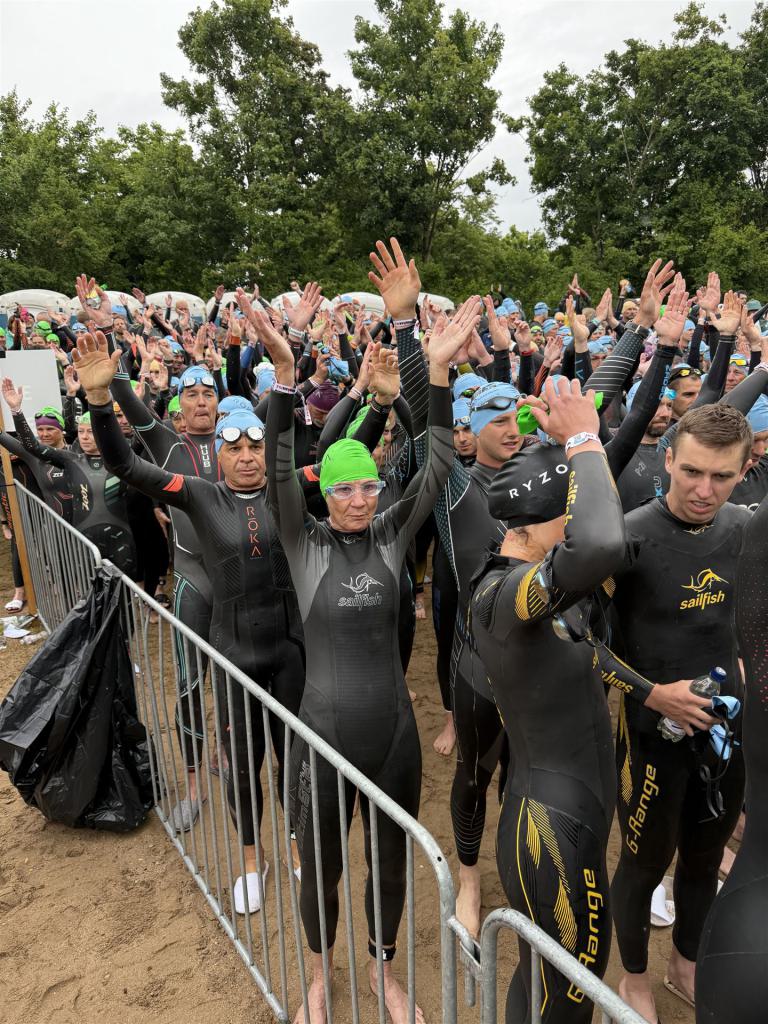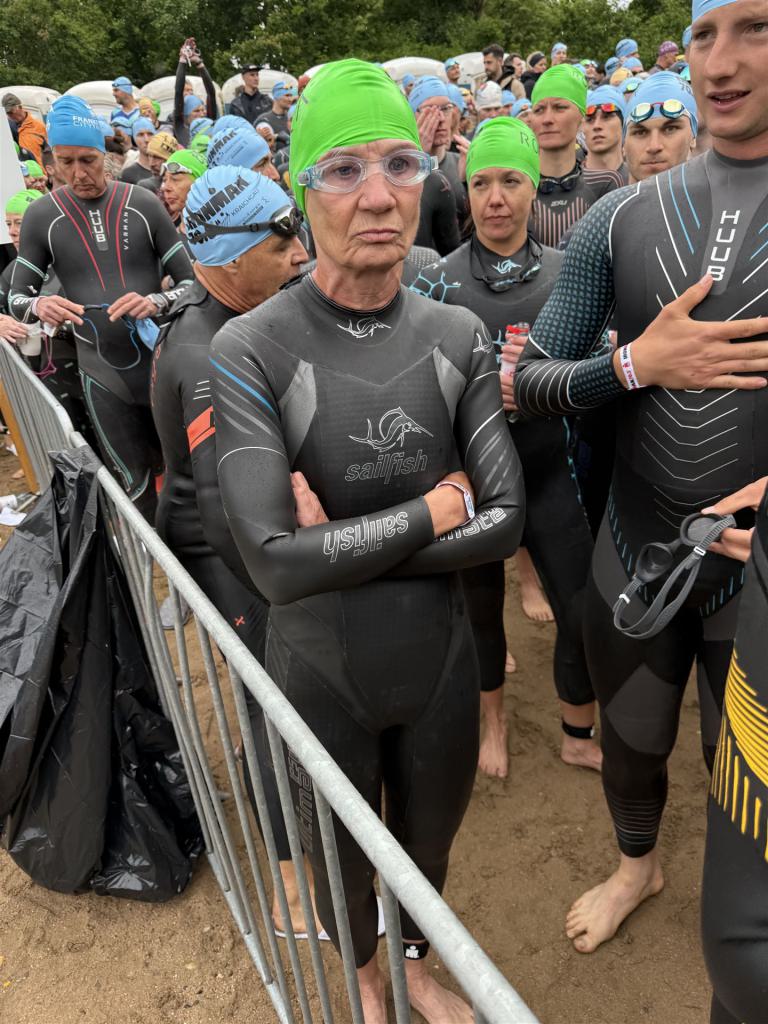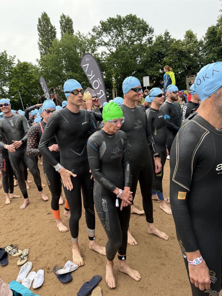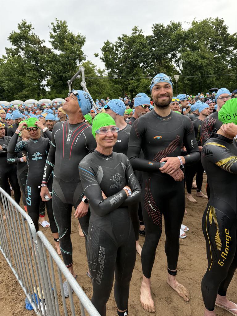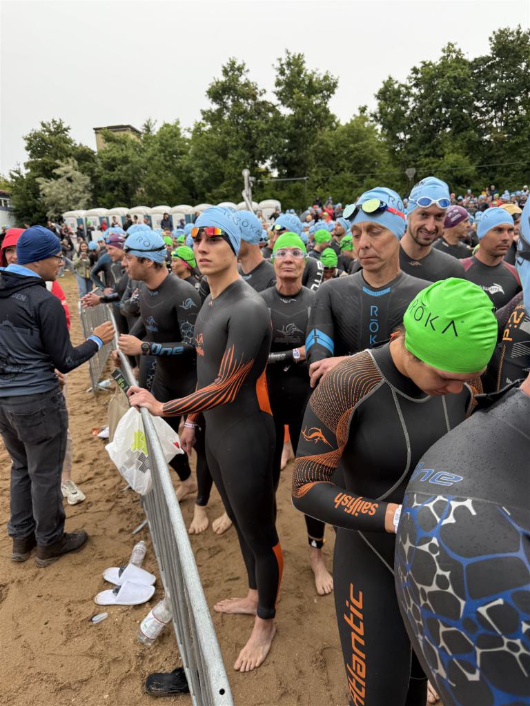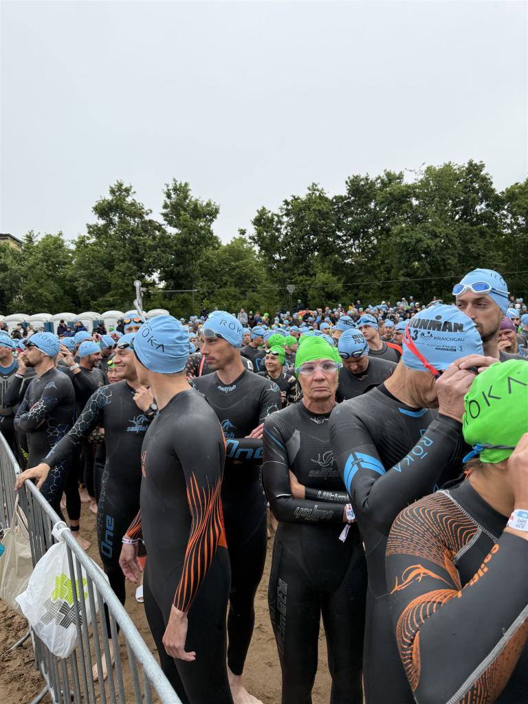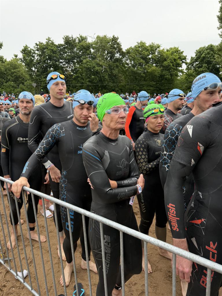 Ich gehe so circa 8:37 Uhr ins Wasser. Es wird eine Runde mit 1,9 Kilometer geschwommen.