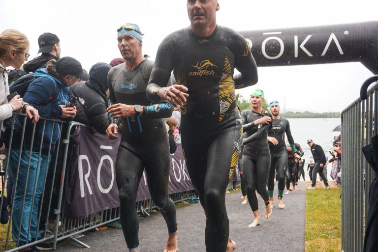 Aufgrund dem Regen und circa 12 Grad Außentemperatur verzichten viele auf das Einschwimmen.
