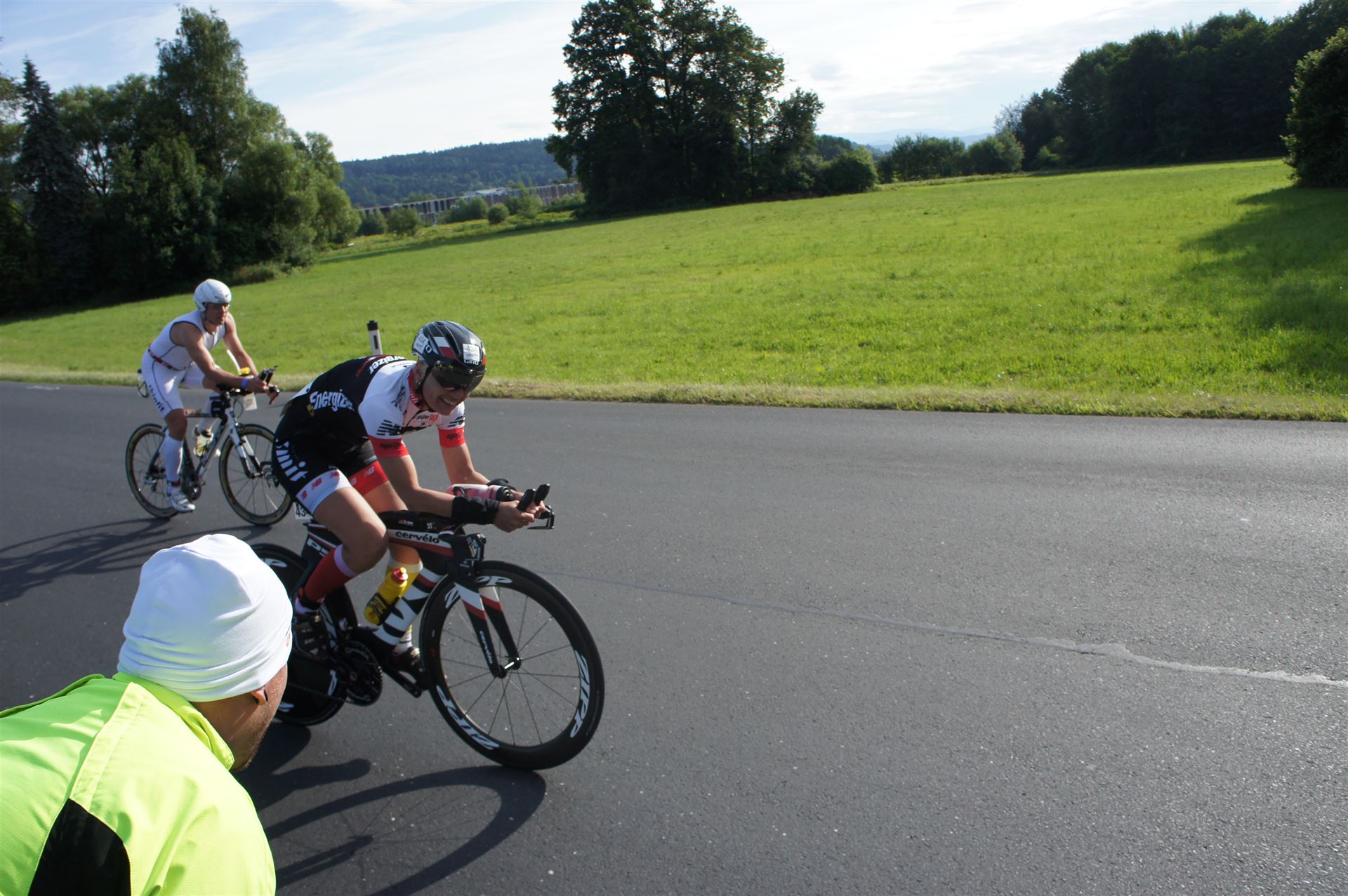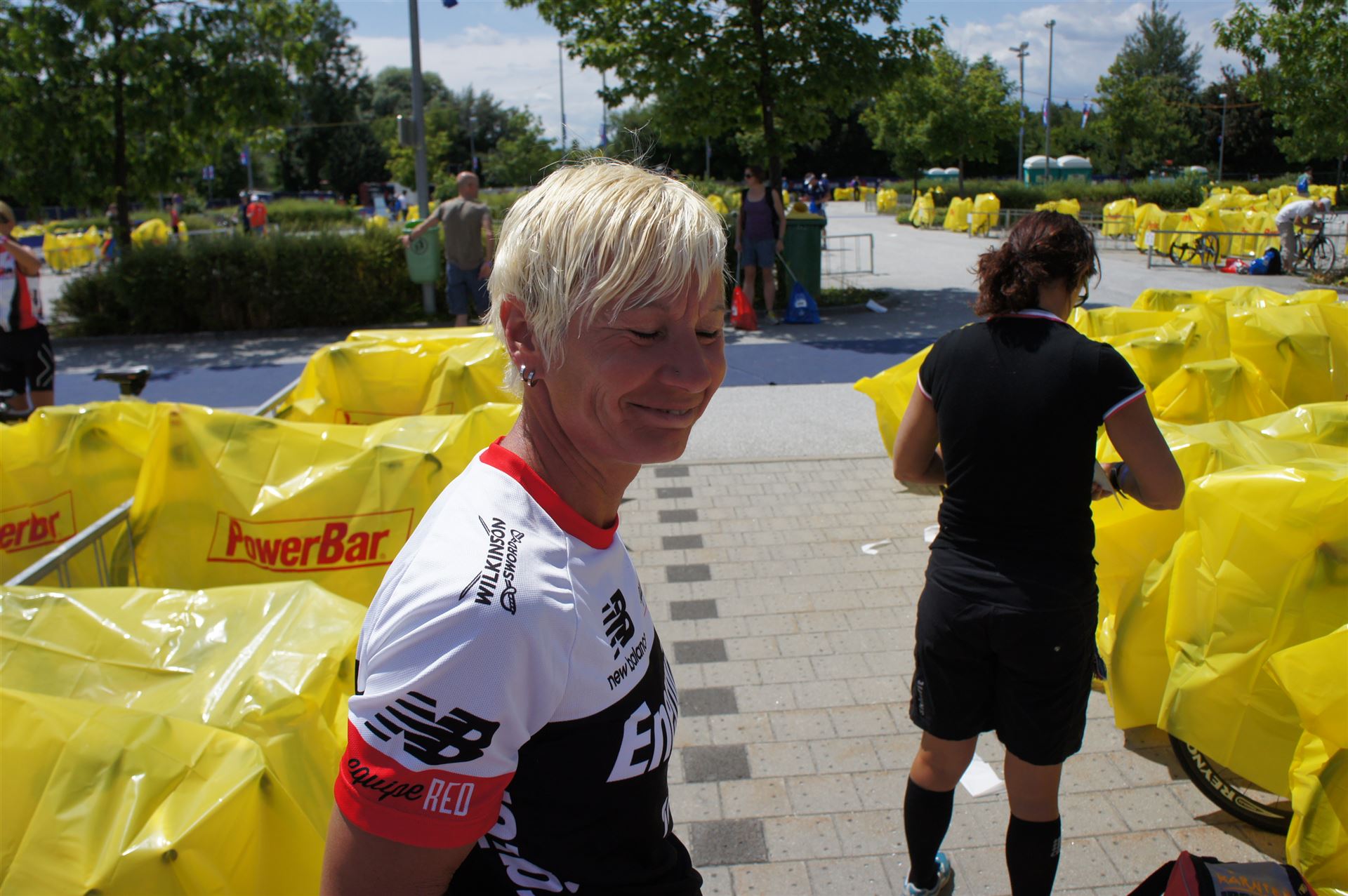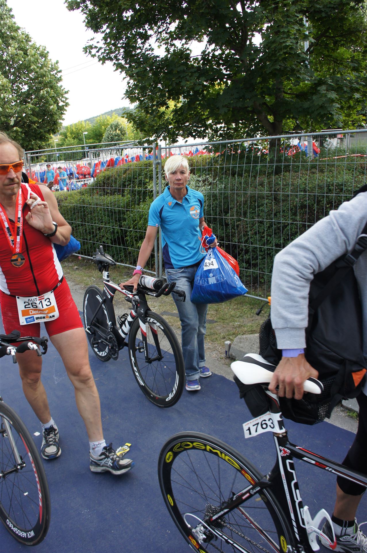Auch hier gibt es viele Fans an der Strecke. Der DJ feuert mich mit der Bemerkung "Ironlady" an, ich kurble den Berg hoch.
