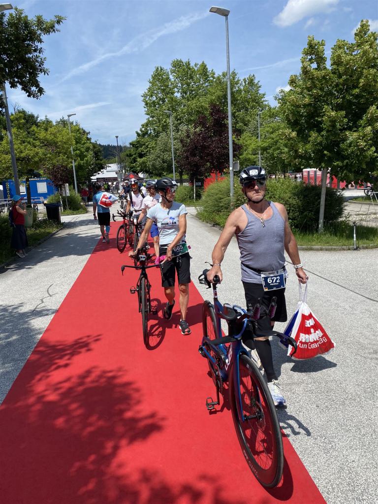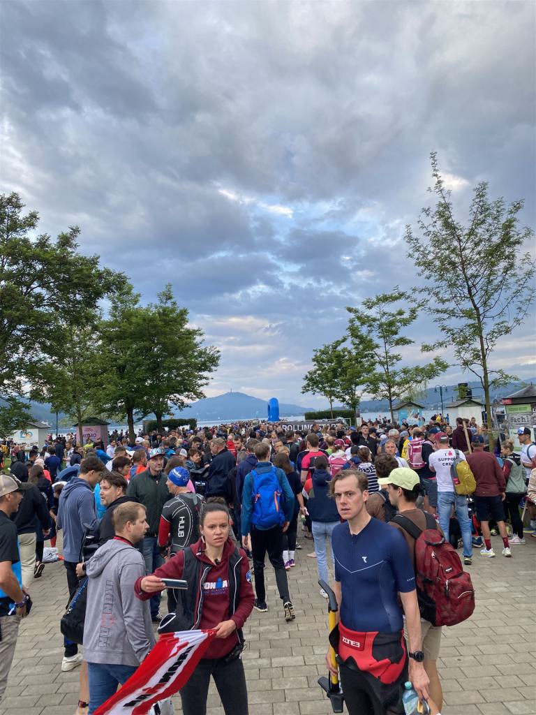 Normalerweise mache ich gerne vor der ersten Langdistanz eine Mitteldistanz um meine Form zu prüfen. In diesem Fall stand am 16.06.2024 direkt eine Langdistanz in Österreich an. Der IM in Klagenfurt ist ein sehr schöner Wettkampf, an dem ich bereits mehrmals teilgenommen habe. Die Wettervorhersage für den Wettkampftag war durchwachsen. Ich mag gerne warme Temperaturen, je wärmer desto besser. In diesem Fall lag die Vorhersage bei circa 22-23 Grad Lufttemperatur mit etwas Regen. Die Wassertemperatur lag ebenfalls bei knapp 20 Grad, keine Bedingungen, die ich gerne mag. Aber egal, das Leben ist kein Wunschkonzert und das Wetter kann man nicht beeinflussen. Die Nacht vor dem Wettkampf ist immer etwas kurz, man schläft auch etwas unruhig. Bereits um 3:30 Uhr war ich wach und bin auch direkt aufgestanden. Für den Wettkampf habe ich bereits alles gerichtet. Die Wechselzone öffnet am Wettkampftag um 5:00 Uhr, ich bin pünktlich da und pumpe noch einmal meine Reifen auf und fülle Getränke und Gel auf. Während der ganzen Zeit regnet es, es kann nur noch besser werden. Erstaunlicherweise nimmt man solche Dinge am Wettkampftag einfach hin, man hat keinen Einfluss.